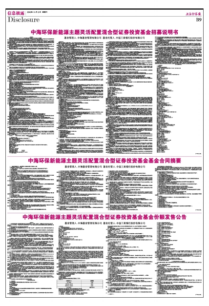 中海环保新能源主题灵活配置混合型证券投资基金基金份额发售公告