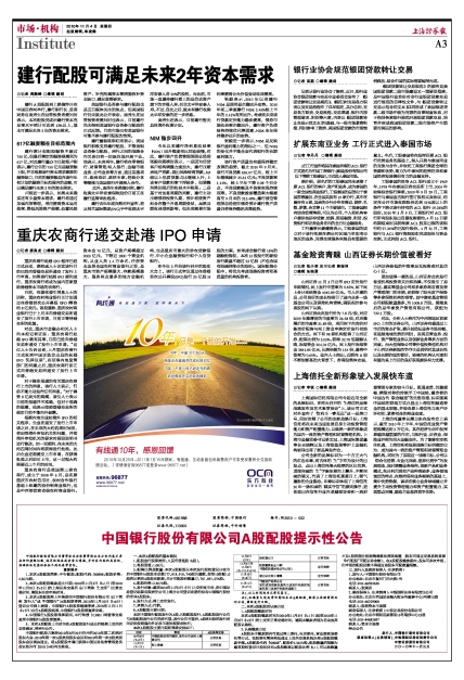 建行董秘陈彩虹则表示,美国银行积极支持建行配股,不管美银是否参与配股,两行之间的战略合作关系仍将一如既往地开展下去。他表示,未来两年,建行将在零售银行、财富管理/私人银行、金融市场业务、公司业务等方面,通过实施项目、跟岗培训、派驻专家、经验分享等继续与美国银行开展深入合作。