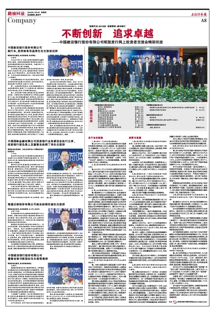 今天是个好日子,欢迎大家参加建设银行A股配股网上路演。我谨代表建设银行管理层和全体员工向参加路演的朋友们表示热烈欢迎,向建行的广大投资者和客户致以衷心的感谢。