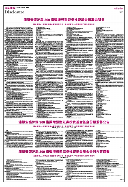 浦银安盛沪深300指数增强型证券投资基金基金合同内容摘要