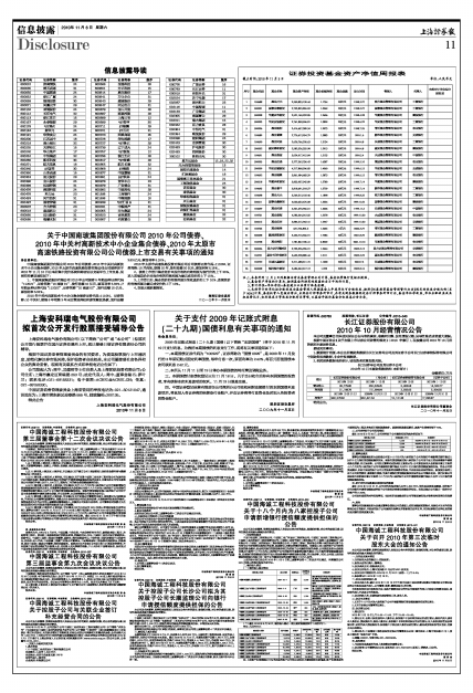 | 证券代码 | 证券简称 | 版序 | | 000776 | 广发证券 | 16 | | 000783 | 长江证券 | 11 | | 000819 | 岳阳兴长 | 31 | | 002024 | 苏宁电器 | 17 | | 002067 | 景兴纸业 | 23 | | 002116 | 中国海诚 | 11 | | 002133 | 广宇集团 | 15 | | 002305 | 南国置业 | 29 | | 002311 | 海大集团 | 15 | | 002342 | 巨力索具 | 28 | | 002364 | 中恒电气 | 31 | | 002394 | 联发股份 | 29 | | 002398 | 建研集团 | 24 | | 002443 | 金洲管道 | 30 | | 002463 | 沪电股份 | 30 | | 002483 | 润邦股份 | 30 | | 300102 | 乾照光电 | 30 |