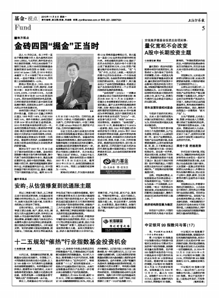 交银施罗德基金投资总监项廷锋:量化宽松不会改变A股中长期投资主题