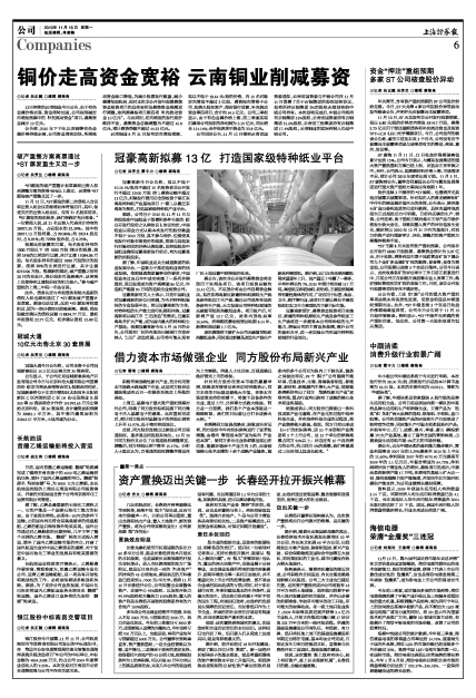 冠豪高新今日公告称,拟以不低于10.16元/股向不超过10名投资者非公开发行不超过12000万股(含),募资总额不超过13亿元,扣除发行费用后全部投资于湛江东海岛特种纸产业基地项目(一期),以搬迁东海岛为契机,打造国家级特种纸产业平台。