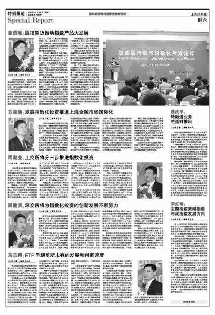 周勤业称,上交所也在不断推动指数化投资的创新。2008年1月推出了公司治理板块与上证公司治理指数,为便于投资,在2008年9月还推出了180公司治理指数,上证180公司治理ETF已在2009年8月推出。而随着上市公司对社会责任的重视,上交所在去年7月又推出了社会责任指数,今年8月份,已有基金公司推出了公司社会责任ETF。