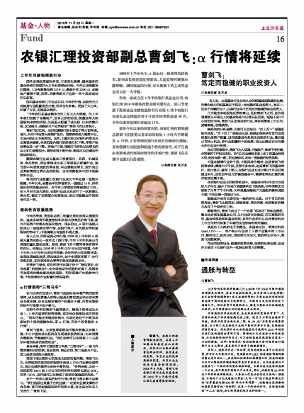 谈及今年以来的投资历程,农银汇理投资部副总曹剑飞在接受记者采访的短短1小时内不断提及α行情,正在管理农银行业成长的他深有感触,多次强调行业配置和精选个股的重要性。对于目前由充裕流动性预期而推导的市场行情,曹剑飞在乐观中也透出几份谨慎。