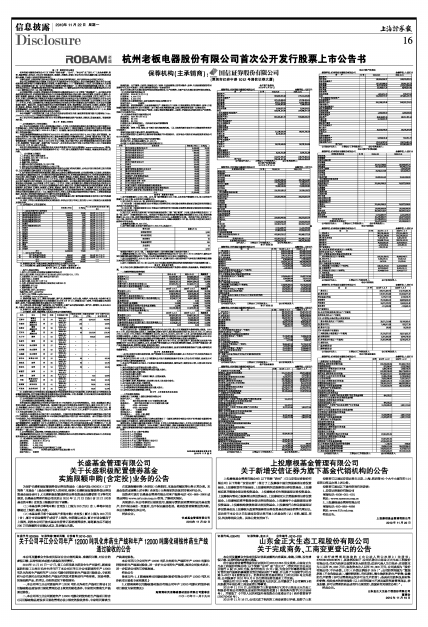 杭州老板电器股份有限公司首次公开发行股票上市公告书