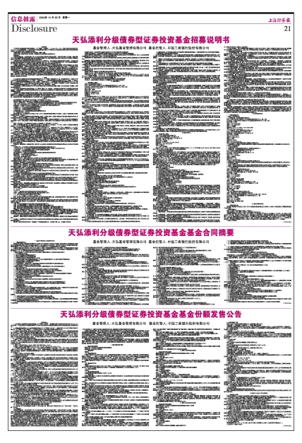 天弘添利分级债券型证券投资基金基金份额发售公告