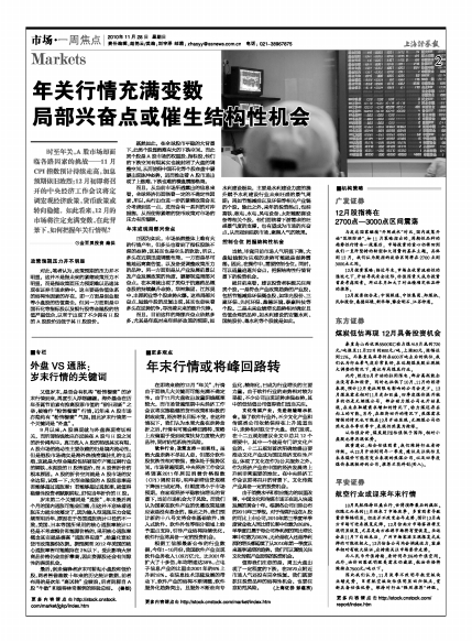 时至年关,A股市场却面临各路因素的挑战——11月CPI指数预计持续走高,加息预期依旧浓烈;12月初即将召开的中央经济工作会议将定调宏观经济政策,货币政策或转向稳健。如此看来,12月的市场将注定充满变数,在此背景下,如何把握年关行情呢?