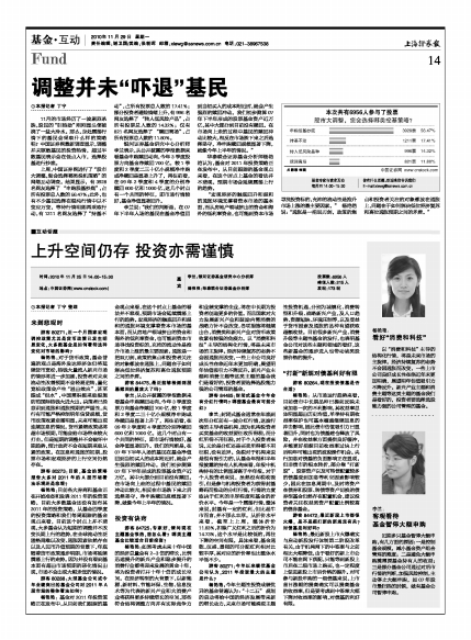 杨艳艳:基金对2011年投资策略正在发布中,从目前我们跟踪的基金观点来看,在这个时点上基金的看法并不悲观,预期市场会延续震荡上行的趋势。宏观经济的触底回升和温和的通胀环境支撑着资本市场的基本面,而从房地产领域挤出的资金和海外的低利率资金,也可能到资本市场寻找投资标的,充沛的流动性是推升市场上涨的最主要因素。通胀是一把双刃剑,政策的焦点和投资者关注的对象都放在通胀上,问题在于如何解决低位经济复苏和高位通胀预期之间的矛盾。