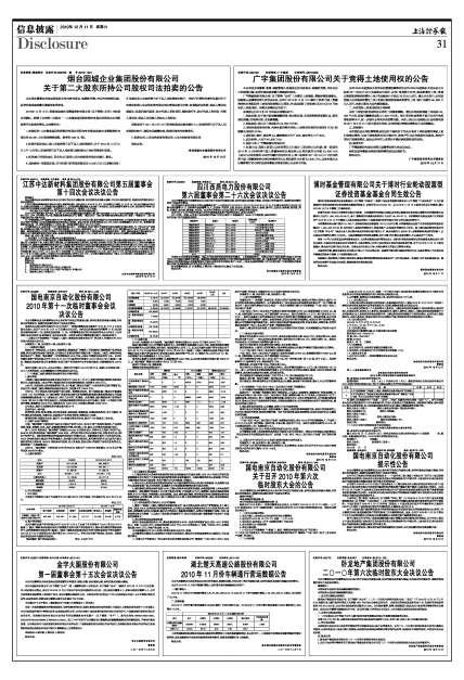 证券代码:002133 证券简称:广宇集团 公告编号:(2010)058