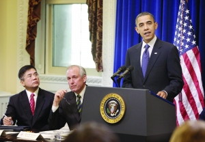 12月9日,美国总统奥巴马在白宫召开的“总统出口委员会”会议上,宣布了有关出口控制改革的新措施,以帮助实现五年内出口翻番和创造就业的目标。相关报道详见6版 新华社/法新 图