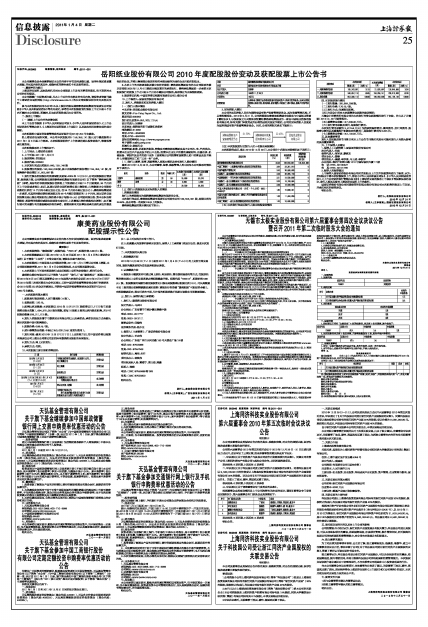 岳阳纸业股份有限公司2010年度配股股份变动及获配股票上市公告书