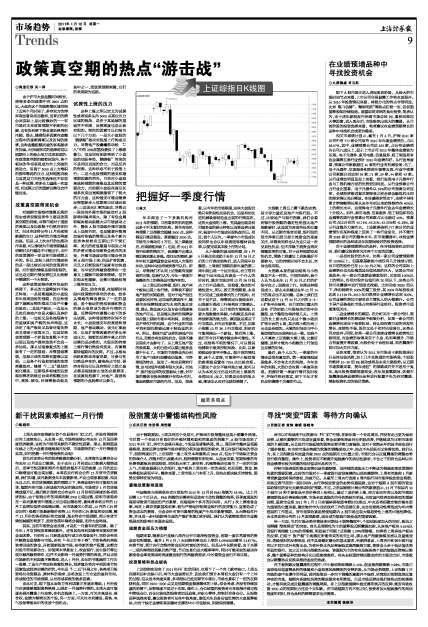 这种政策面维持真空状态的格局下,多头的力量释放并不缺乏阵地:一是前期超跌的小盘股有年报高送转的预期,在这种预期下超跌反弹的推动力会产生叠加效应;二是地产板块,一边是元旦前后房地产交易火爆以及房价的上涨、一边却又是各地限购令的延续和房产税的风声再起,这决定了地产板块又具备估值优势却又受困于政策压力,但是如果政策预期一个阶段加息靴子不会出现以及地产调控政策不会进一步加码,那么估值修复式的上涨就有了一定的基础,尽管基础薄弱,但游击战的思路有望得以实现;三是各个行业和领域的政策刺激效应。随着“十二五”规划的细化落实,近期很多领域的远景规划都在陆续出台或者酝酿出台中,高铁、核电、环保等板块就是其中之一,受政策预期刺激,它们的表现较为活跃。