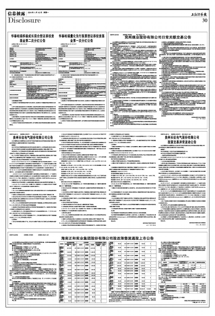 海南正和实业集团股份有限公司股改限售流通股上市公告