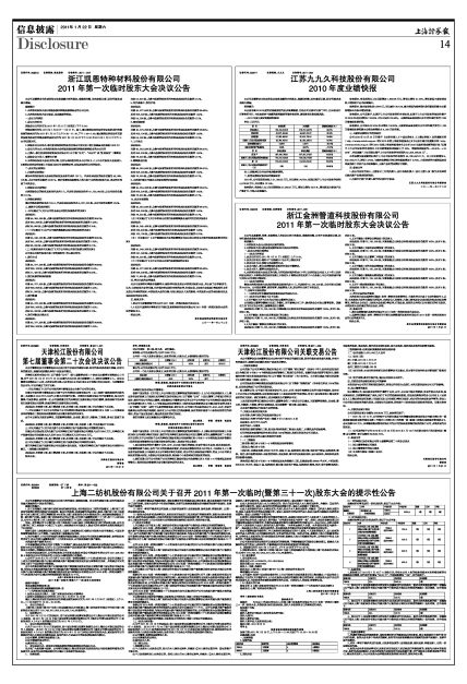 上海二纺机股份有限公司关于召开2011年第一次临时(暨第三十一次)股东大会的提示性公告
