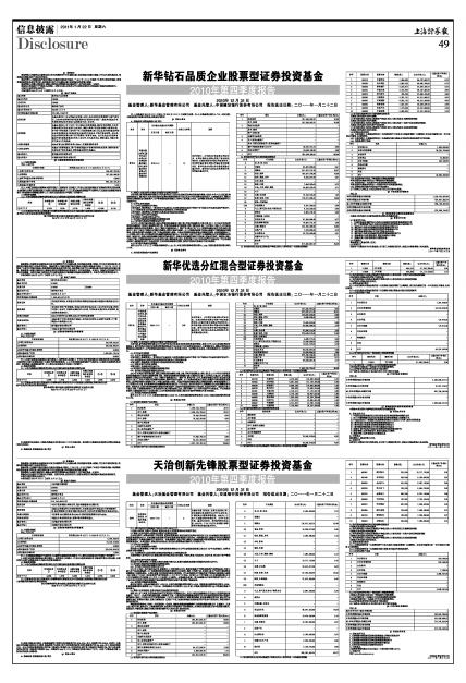 新华钻石品质企业股票型证券投资基金2010年第四季度报告