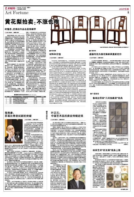 对专拍的市场影响,他认为也好也不好:好的是新的拍卖价格会让好的藏品出来,尤其是对那些收藏期长达十几年的老藏家,这么好的价格对他们有吸引力。因此,今年春拍肯定会再推黄花梨家具;不好的则是:新的拍品该如何定价比较困难。