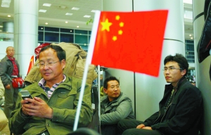 1月31日,在埃及首都开罗国际机场,中国旅客等待增派航班的到来。
