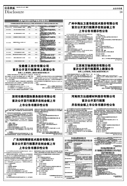 经深圳证券交易所审核同意,本公司发行的人民币普通股股票将于2011年2月15日在深圳证券交易所创业板上市,上市公告书全文和首次公开发行股票并在创业板上市的招股说明书全文披露于中国证监会创业板指定的五家信息披露网站:巨潮资讯网(www.cninfo.com.cn)、中证网(www.cs.com.cn)、中国证券网(www.cnstock.com)、证券时报网www.secutimes.com)、中国资本证券网(www.ccstock.cn),供投资者查阅。
