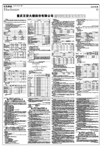 重庆百货大楼股份有限公司2010年年度报告摘要