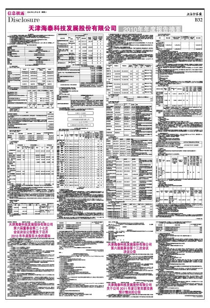 天津海泰科技发展股份有限公司(以下简称“公司”)拟于2011年3月28日召开公司2010年年度股东大会,会议初步安排如下: