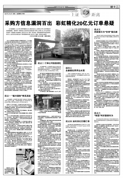 针对上述种种疑点,本报记者昨日多次尝试联系包括董事长以及董秘在内公司高管,但均未正面答复。对于彩虹精化巨额订单的具体执行情况,本报将持续关注。