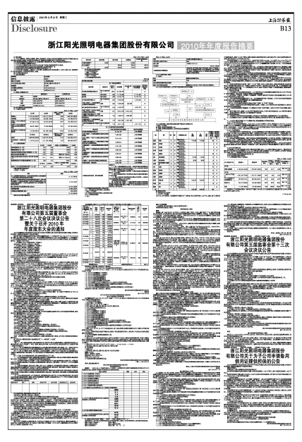 浙江阳光照明电器集团股份有限公司2010年年度报告摘要