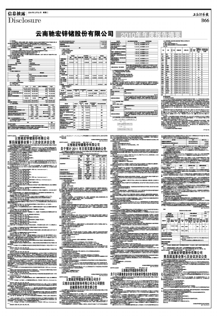 云南驰宏锌锗股份有限公司2010年年度报告摘要