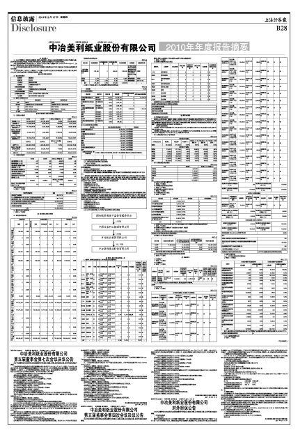 中冶美利纸业股份有限公司2010年年度报告摘要
