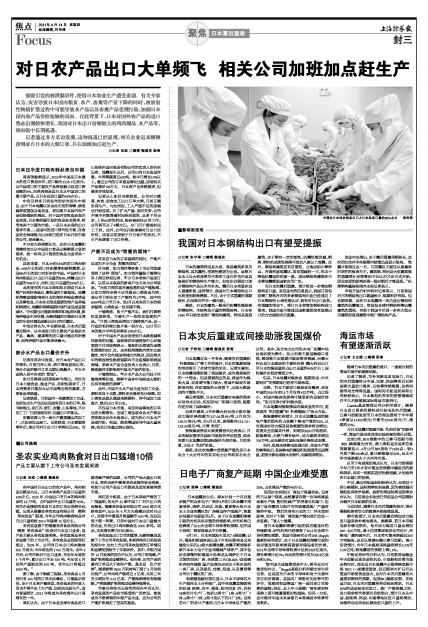 对日农产品出口大单频飞 相关公司加班加点赶生产