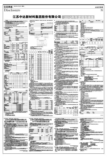 江苏中达新材料集团股份有限公司2010年年度报告摘要