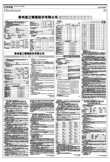 贵州盘江精煤股份有限公司2010年年度报告摘要