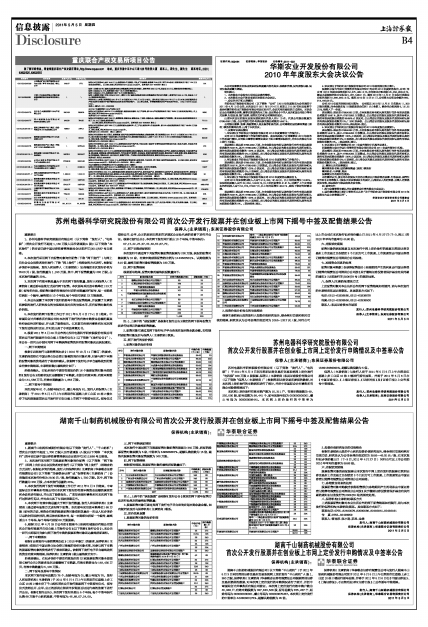 湖南千山制药机械股份有限公司首次公开发行股票并在创业板上市网下摇号中签及配售结果公告