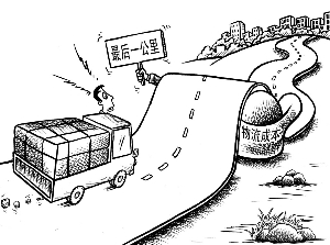 2010年中国物流总费用占国内生产总值比重约18%,高出发达国家一倍。物价高企背后,有许多复杂的原因,过高的物流成本使得物流不畅进城难,则是其中一个重要推手。漫画 刘道伟