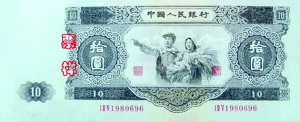 三版人民币是最被看好的收藏品种,其最大的特点就是版式多样。比如1角面值的就有“背绿”、“背绿水印”、“枣红”等版别。“枣红”由中央美术学院的专家葛维墨设计,由著名钢板雕刻大师吴彭越雕刻。正面主景反映的是“干部下放劳动锻炼”的内容。这枚纸币是1960年到1962年生产的,当时正值中苏关系紧张,从苏联进口的钞票纸已所剩不多。“枣红”因为印制工艺复杂,生产效率不高而停止了印刷。而“背绿”则是我国突破钞票纸技术难关后自行研制的新1角,具有特殊的时代意义。