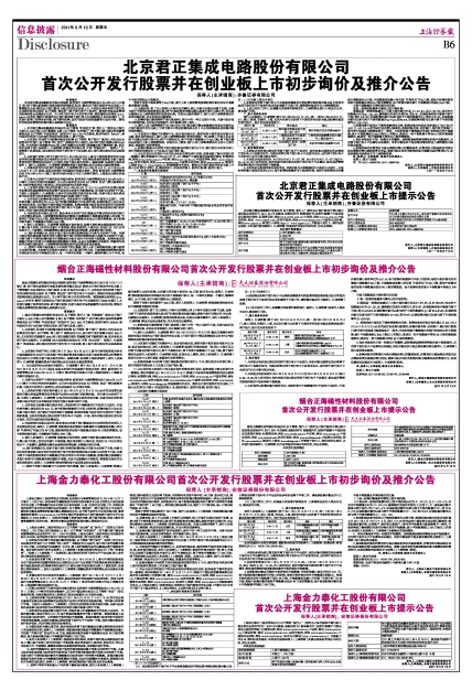 上海金力泰化工股份有限公司首次公开发行股票并在创业板上市初步询价及推介公告