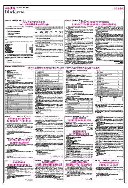 济南钢铁股份有限公司关于召开2011年第一次临时股东大会的提示性通知