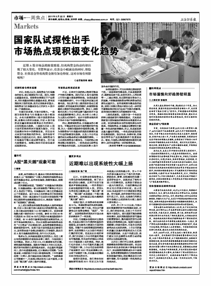 国家队试探性出手 市场热点现积极变化趋势