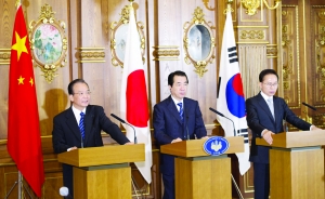 第四次中国、日本、韩国领导人会议22日在日本东京举行。中国国务院总理温家宝、日本首相菅直人和韩国总统李明博出席会议。温家宝在发言中建议,推进贸易投资自由化、便利化。在今年内完成三国自贸区官产学联合研究,争取明年启动谈判,努力在今年内完成三国投资协定谈判。推动物流信息互联与共享,全面开展陆海联运合作。大力发展可再生能源。合作发展风能、太阳能、潮汐能、生物质能,大力推广节能技术。成立中日韩“可再生能源产学研创新联盟”,将三国技术、生产和市场优势更好结合起来。加快中日韩循环经济示范基地建设,促进合理利用资源、保护生态环境、实现可持续发展。新华社 图