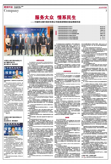 服务大众 情系民生——中国民生银行股份有限公司投资者网络交流会精彩回放
