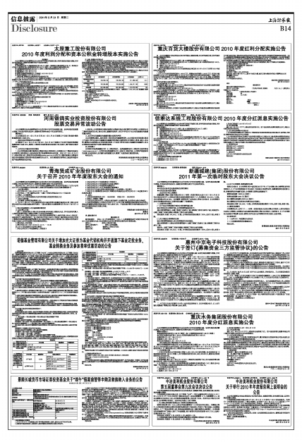重庆百货大楼股份有限公司2010年度红利分配实施公告