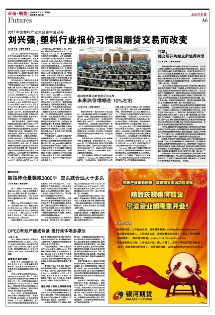 原油价格在前一段时间经历了较大波动,未来国际油价走势成为本届塑料产业大会的热门话题。新加坡纳维达斯资源公司主席Tom James在论坛中表示,未来的油价的增幅可能在10%左右,石油后期还将维持一个较高的价位。未来如果石油的价格进一步上升,大宗商品的投资价值将更为显现。他表示,未来的油价会在70-110美元这一可控的范围内波动,与此同时,可以通过大连商品交易所和其他的交易所的期货产品,为企业进行套期保值。