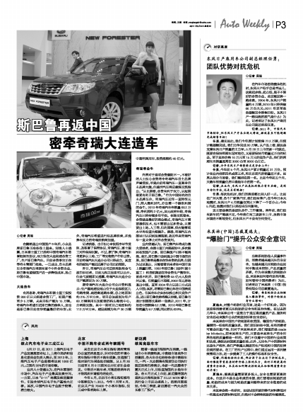 斯巴鲁再返中国 密牵奇瑞大连造车