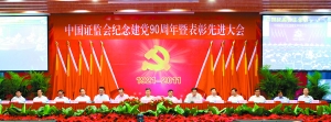 日前,中国证监会在京召开大会,隆重纪念中国共产党建党90周年,回顾党的光辉历史,歌颂党的丰功伟绩,表彰证券期货监管系统先进基层党组织和优秀个人,进一步动员基层党组织和广大党员深入开展创先争优活动。