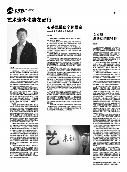 现在暴露出来的问题肯定有一部分真实存在,很多时候,文交所做得更多的是关注资本的特性,没有对文化艺术的资源特性了解得很清楚,很多搞资本的不了解艺术,了解艺术的不了解资本,所以现在很难有人站在一个公平公正客观的位置去评论这个事情。