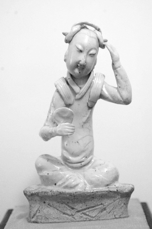 聊了一会儿后,夏德武坐不住了,连忙带记者“实地考察”。从一间房到另一间房,夏德武兴致勃勃地一一介绍:“这是内蒙古的辽瓷,这是南宋越窑的男观音,这是晋代的美人鱼,这是北宋的鸭子……”边说边兴致高昂地感叹:“这家庭环境感多好啊!”一边跟记者介绍,夏德武一边还招呼摄影师过来欣赏:“拍这个!南宋湖田窑的梳头的侍女,你看小脸做得多漂亮,绝了!”说着便伸手过去特意取下盒子的玻璃罩,嘱咐不要用闪光灯。
