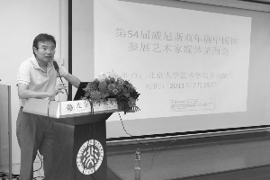 6月25日上午,北京大学教授、本届威尼斯双年展中国馆策展人彭锋,带领部分参展艺术家在北京大学艺术学院多功能厅举办了中国馆开幕以来的第一次展出情况汇报。这次汇报除了为国内媒体展示了双年展中国馆的现场情况,还集中展示了国外媒体对中国馆展览的种种报道和评价。