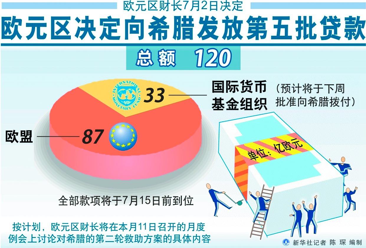 欧元区财长决定根据去年达成的救助协议向希腊发放第五批贷款
