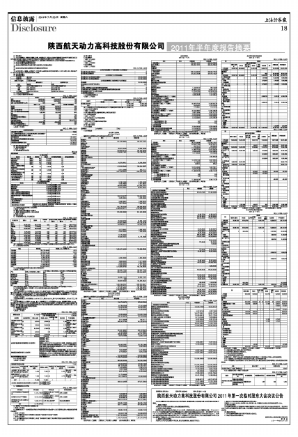 陕西航天动力高科技股份有限公司2011年半年度报告摘要