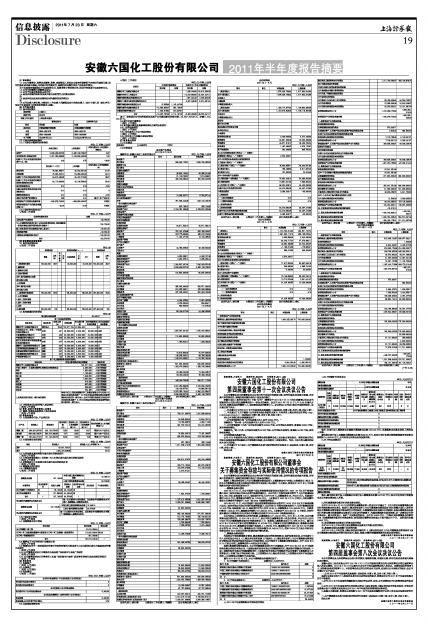 安徽六国化工股份有限公司2011年半年度报告摘要